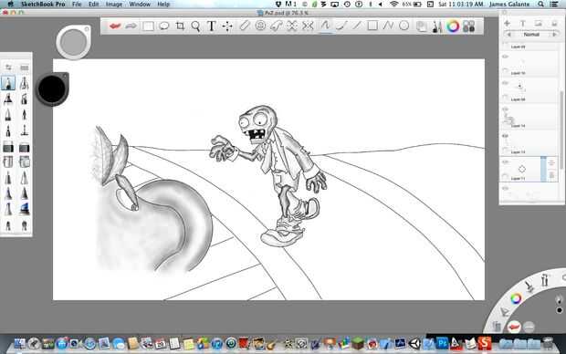 El proceso de crear el shooter pea es exactamente igual al zombie. Es más fácil debido a que hay menos detalle en el tirador. Para iniciar el proceso. 1: dibujo básico con un lápiz, 2: más oscuro hacia fuera de línea, 3: sombra!