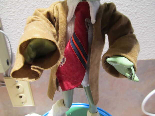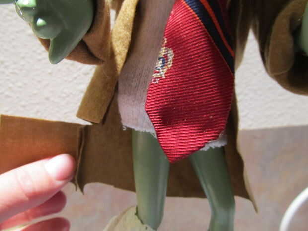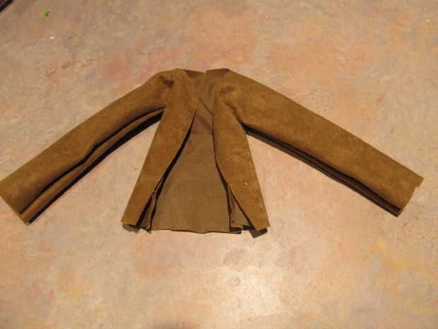 * Ahora deslice a su zombie como usted poner su propia capa y tuck bajo cualquier sobrante en las muñecas.