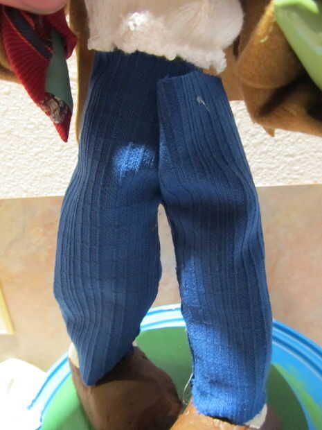 * Ahora toma el rectángulo restante y envuélvalo alrededor de la pierna restante formando la segunda pierna del pantalón. Pegamento en la costura de la pierna hasta la entrepierna.
