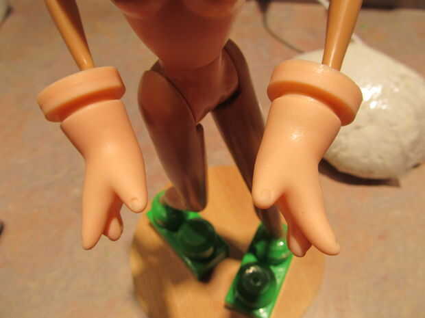 * Tomar las manos de muñeca grande y pegar la mano de barbie hasta el borde de la mano de la muñeca. Esto da un poco más largo que los brazos.