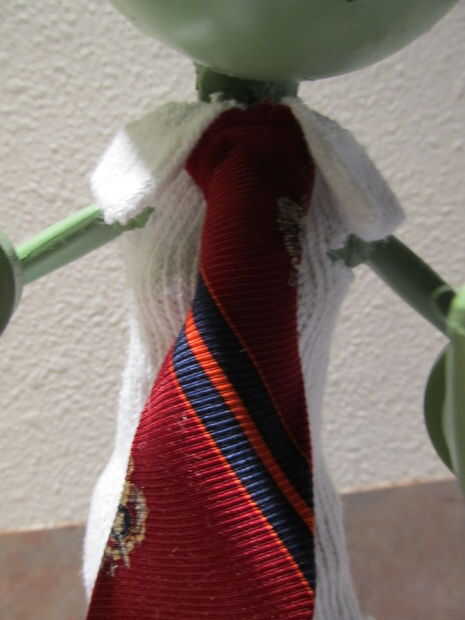 * Pegar la corbata en su lugar en la parte superior de la camisa con el cuello sobre la parte superior.