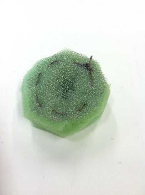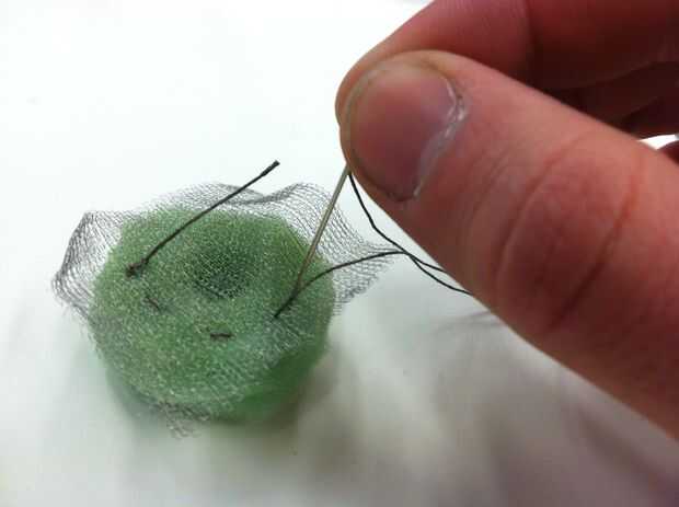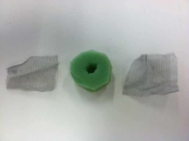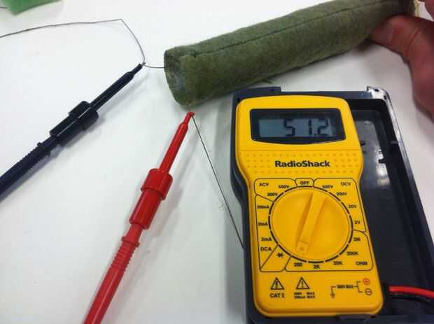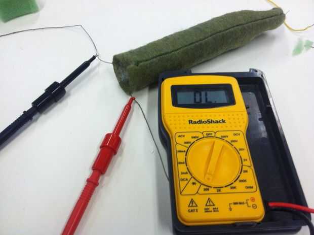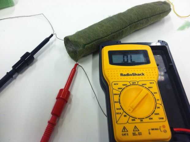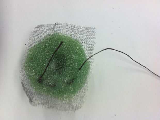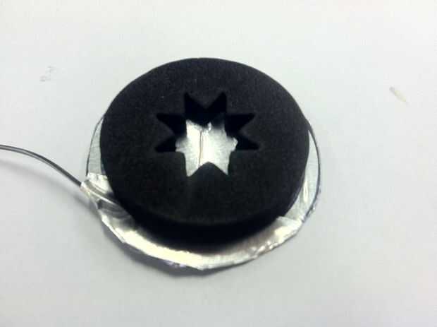 La conmutación se realiza con una espuma 'Donut' con tela conductora de cada lado. Cuando se aprieta la dona, puede tocar el tejido conductor en cada lado, cierre el circuito. Cuando sueltes, la espuma separa a la tela conductora, abriendo el circuito. (Conseguimos la forma de idea este instructable.)