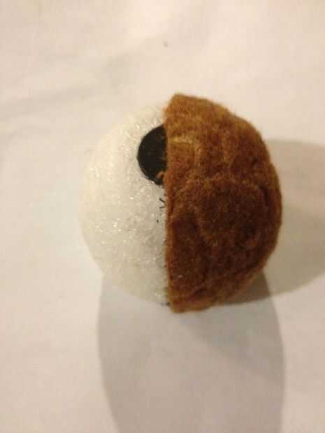 Sus ojos son saltones ojos modificados; sacó las pupilas negras, corte hacia abajo y luego les reinserta.