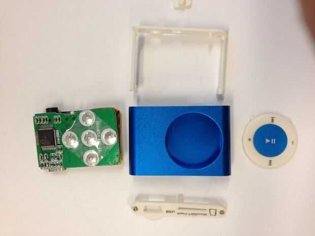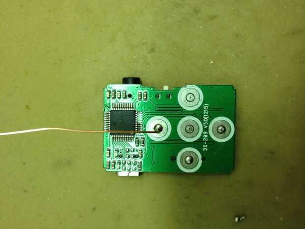 Quitar la Junta de la caja y cableado duro que el audio salidas directamente a nuestra Junta de amplificador (como se ve en el siguiente paso). Nosotros también duro habían cableado de los interruptores que controlan el volumen, reproducir/pausa, pista siguiente y anterior pista. Desconecta la batería y conectado el las entradas de energía a las salidas de Arduino.