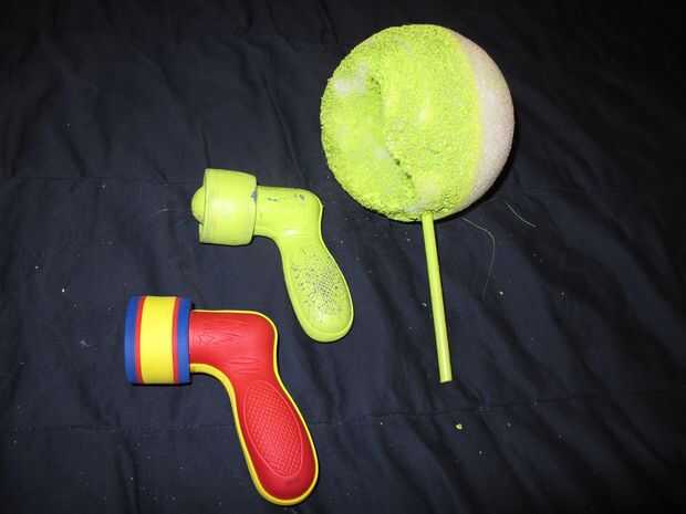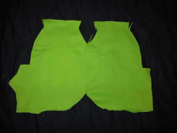 La cubierta externa de las cabezas de guisante shooter era una tela de polar verde de Lima que nos encontramos en una tienda de tela. Tenemos que experimentar un poco para encontrar la forma correcta para coser las cubiertas de la cabeza, pero esperamos que estas fotos dan una buena idea. El paño grueso y suave era muy elástico, así que la forma exacta no es importante. Sólo tratamos de hacer en la parte estrecha, por lo que se extienden alrededor de las formas, dar definición a la cabeza y sosteniendo todo juntos.
