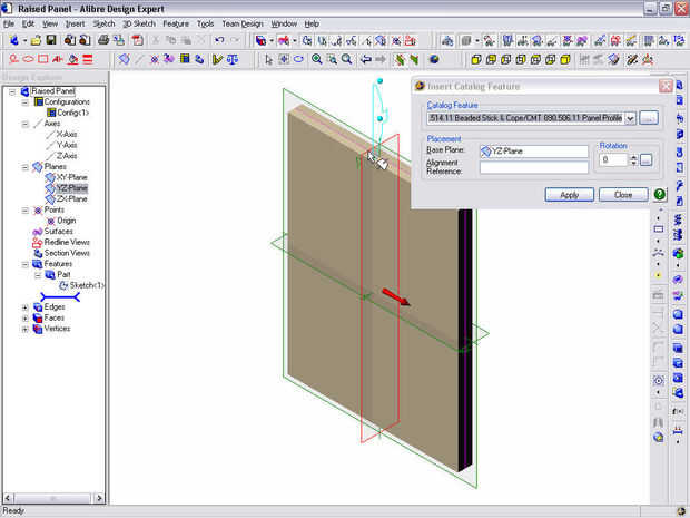 Seleccione el plano base sobre la cual insertar la función de catálogo. Que este caso va a ser el plano YZ.