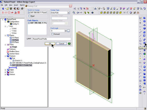 Cambie la etiqueta a un nombre de función apropiada, como perfil de Panel levantado y pulse el botón OK para crear el corte barrido.