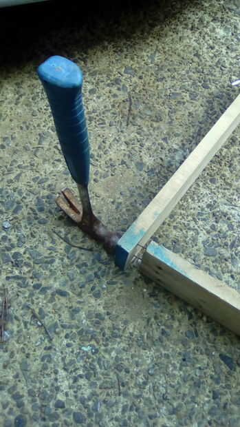 use martillo para enderezar clavos si doblado y luego proceder a conectar todos los rincones para que cada esquina es clavado y apoyado contra la otra hasta formar un cuadrado