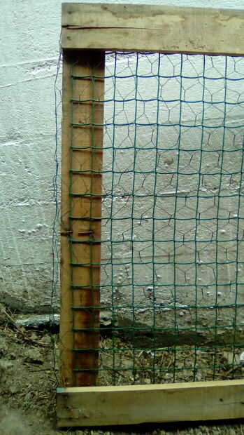 mismo principio como antes pero en lugar de clavar de lado en el clavó completamente uno al otro con el alambre de pollo entre tableros