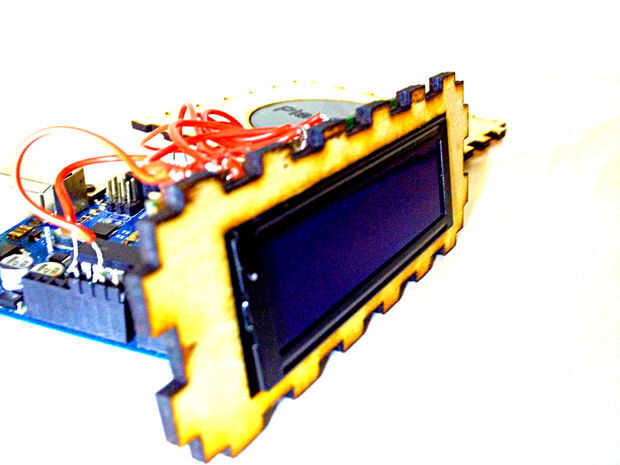 Montaje de 16 x 2 LCD en la pieza con el orificio rectangular.