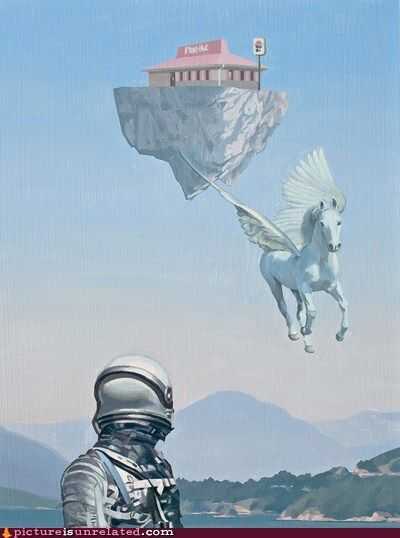 Para su entretenimiento, aquí está una foto de un Pegaso volando de una pizza hut flotante isla a un astronauta. No hacer esto, lo encontré aquí: http://pictureisunrelated.memebase.com/2012/06/02/wtf-photos-videos-the-magical-land-of-pizza-hut/