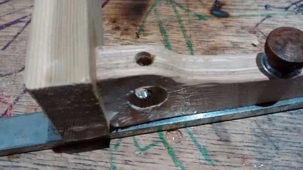 el paso final es la barra que fija la distancia para cada dedo. Para ello perforó un agujero en la diapositiva, evite el tornillo previamente colocado y asomó una clavija a través del orificio. Después de eso, taladré un agujero en la parte superior de la diapositiva para cubrir el agujero. este agujero era un poco demasiado pequeño en comparación con el tornillo que apriete el pasador en su lugar. Para ayudar en la medición en intervalos de 1cm mayor en la espiga