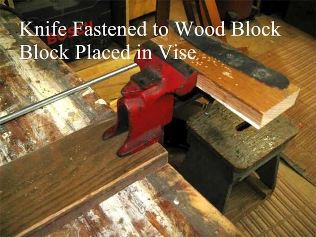 A continuación, había jodido mi cuchillo en blanco a un trozo de madera y coloca esto en la prensa.
