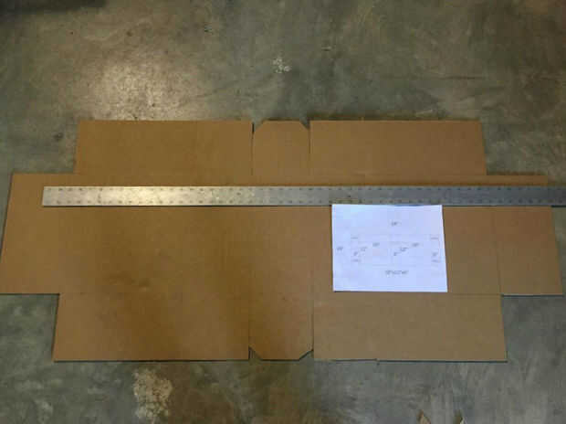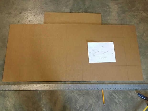 Asegúrese de que la lámina de cartón es al menos tan grande como las dimensiones en la plantilla (A y B). Si no encuentras material corrugado grande suficiente para hacer una caja en una sola pieza, utilizar la plantilla denominada "Caja de 2 piezas" y utilizar 2 o más hojas para hacer una caja (ver paso # 6: "Caja de 2 piezas").
