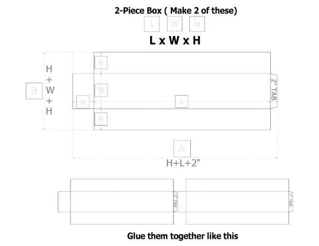 Si no encuentras material corrugado suficientemente grande como para hacer una caja en una sola pieza, utilizar la plantilla denominada "Caja de 2 piezas" y utilizar 2 o más hojas para hacer una caja. Corte (2) hojas idénticas y pegar uno de los 2" fichas hasta el final de la otra hoja. Utilice su borde recto para asegurarse de que están pegados a lo largo de una línea recta. Volver al paso 3 para completar el cuadro.