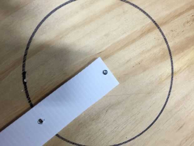 Coloque el sharpie en el orificio taladrado y dibujar el círculo utilizando la plantilla como guía. La mejor manera es presionar hacia abajo y dar una pequeña tracción lateral mientras dibujo. Hacer el círculo con un movimiento, minimizará el error.