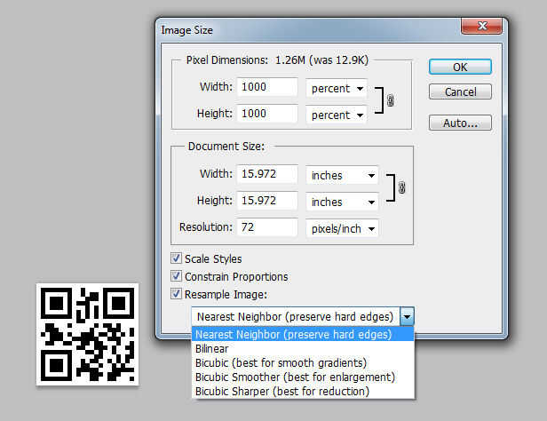 Una vez que tienes el código QR abierta necesita cambiar el tamaño para que sea un poco más fácil trabajar con. Usted puede hacer esto pulsando