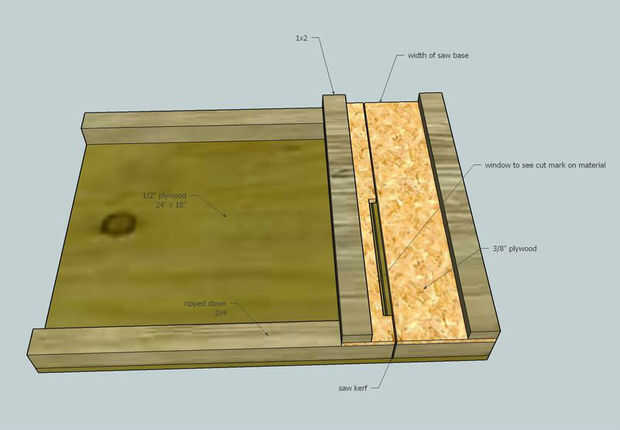 Sólo estaba usando un 5-1/2" corte sierra así que opté por utilizar una madera más fina para mi apoyo de corredor. En la madera utilizada para el corredor, marcar y cortar la madera por lo que tiene una esquina perfectamente cuadrada. Coloque un tablero de corredor a la madera contrachapada que es cuadrado. Ajuste la hoja en la sierra para que ninguno de la cuchilla sobresale a través de la placa base. Coloque la sierra en la madera contrachapada con el lado de la placa base tocando el primer corredor. Establecer el segundo corredor que toca el lado opuesto de la placa base. Los dos corredores deben ser paralelas para evitar que la sierra vinculante, así que empuje la sierra a través de los corredores para asegurarse de que los corredores están espaciados uniformemente. Si en paralelo, conecte el segundo corredor a la madera contrachapada.