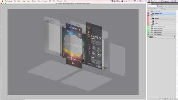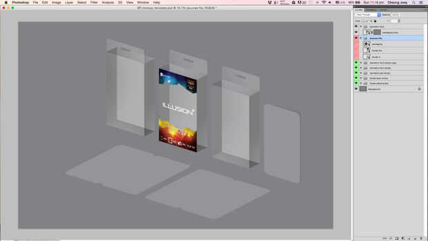 Distorsionar y ocultar las capas duplicadas para envolver la superficie, repita el paso 3 y 4 para el embalaje entero.