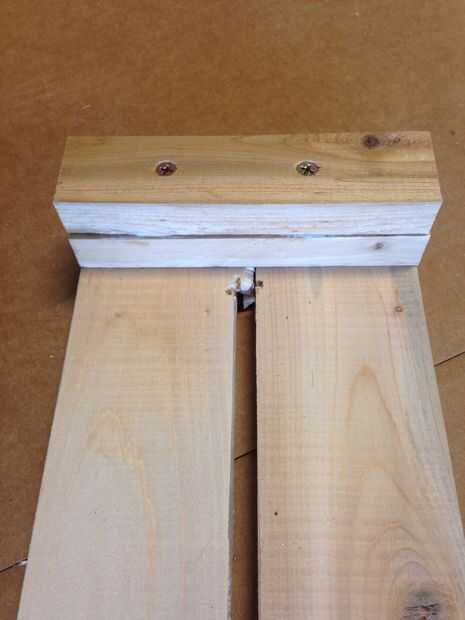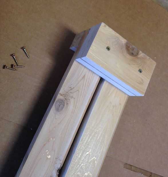 Conseguir dos de sus restantes 4 piezas de madera y sujete a uno de los extremos de la parte superior de la plantilla de la misma manera esté con los pies.
