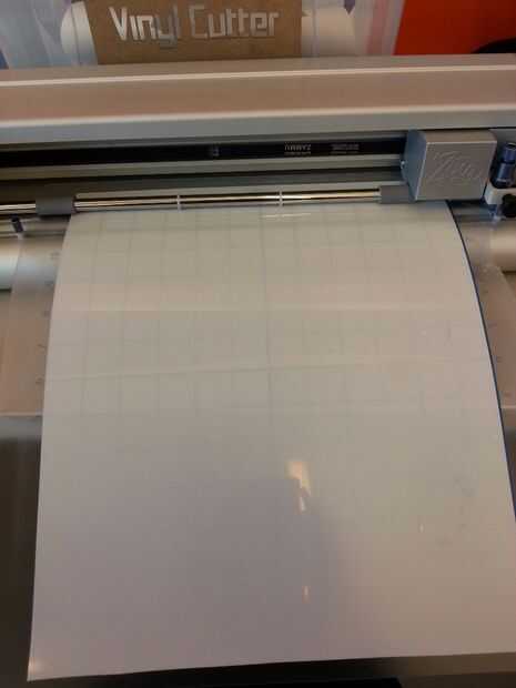 Encienda el cortador de Zing y coloque la lámina perimétrica en la máquina debajo de los rodillos. Vas a querer hacer todo el camino de regreso, nos a configurarlo para iniciar en la esquina inferior derecha. (Solicitar a un empleado MakerSpace ayuda si esto parece confuso.)