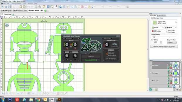 Antes de cortar, escuchar el archivo haciendo clic en la lupa. Haga clic otra vez para ver la vista previa de la plantilla. Cuando estás seguro que todo es correcto, haga clic en las tijeras. Ajuste la configuración según el Manual de usuario aire Zing y su material.