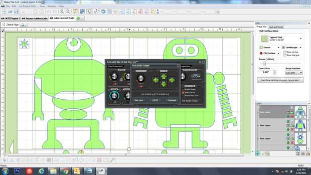 Una última cosa antes de ir a corte... usted necesita establecer su origen de la hoja. En este ejemplo, estamos usando el entorno WYSIWYG para que corte exactamente como ves en la pantalla. Siga adelante y haga clic en configurar hoja de origen. Usa las 4 flechas para mover el punto láser rojo a la parte inferior derecha de su material en la estera. Haga clic en terminado. Y luego corte proyecto!