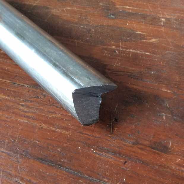 Corte las piezas de acero como se muestra en las fotos. Las longitudes no son críticas. Asegúrese de que el 1" barra redonda (o cualquier tamaño terminas usando) es suficiente para caber en el banjo de su torno de madera y aún llegar a la línea central del husillo del torno. Me