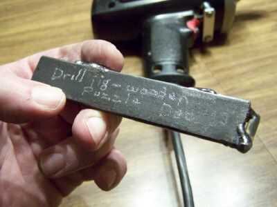 Cortar la culata cuadrada. Insertar en el ángulo de la plantilla. Inserte la broca en el manguito de pezón. Perfore a la profundidad requerida. Retire la broca. Toque y soplar aserrín del agujero.