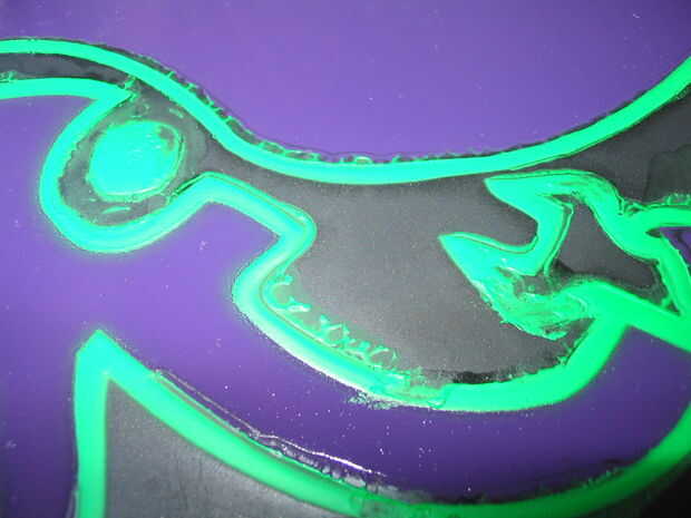estuve tentado a colocar las piezas interiores en esta primera galería de símbolos. Los canales finos no consigue mucha pintura en ellos hasta que perdí la paciencia y realmente gooped la pintura. Entonces había malvada en la plantilla y había hecho un lío.