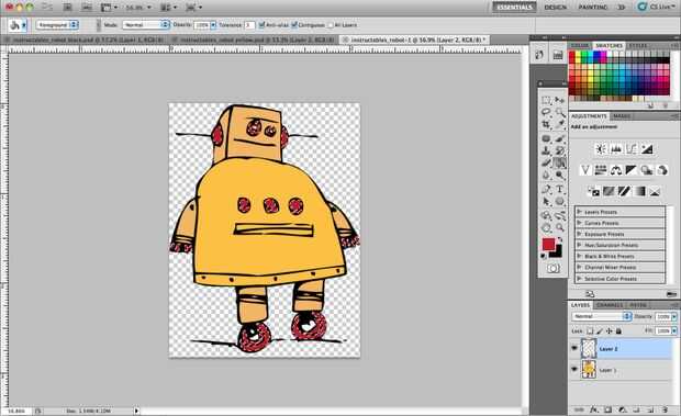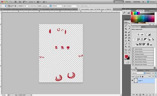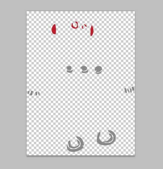 seleccioné las restantes pequeñas zonas de color (rojo y gris) para la tercera capa de la plantilla (fig 1). Creé una nueva capa y llena las áreas seleccionadas con un color (Fig. 2). He borrado la imagen de fondo (Fig. 3) y vuelve a cambiar el color de las ruedas, botones y dedos a gris (Fig. 4).