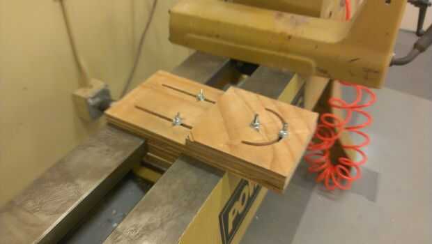 El mio es 6" ancho y 12" de largo. Recorte con el Shopbot CNC en TechShop para asegurarse de que los surcos y el arco de rotación se cortaban perfectos. Puede probablemente lo bastante fácilmente con un router aunque.