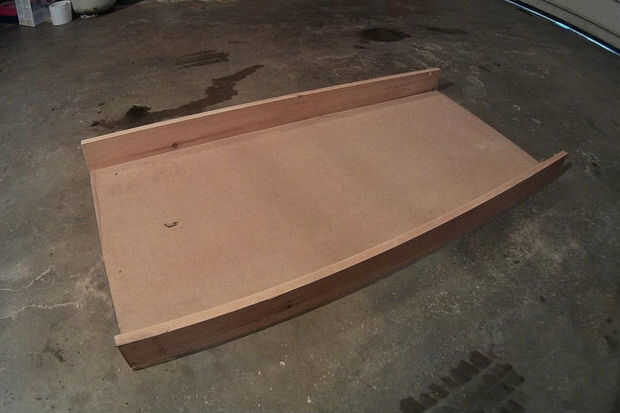 La mesa es una pieza de MDF de 1 x 4 a cada lado para levantar el trineo. En la parte inferior de la tabla había atornillada los rieles con 4 tornillos.