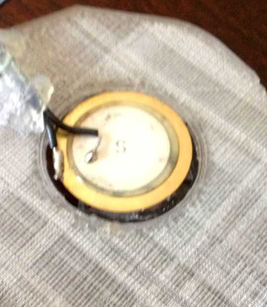Soldadura de 2 cables para el piezo. Esto pasará al circuito en la banda de tobillo.