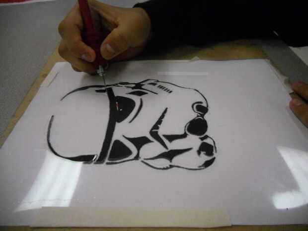 Pone una hoja de material arriba encima de la imagen, cinta abajo si no desea moverse y empezar a cortar. Ser cuidadosa, preste atención, ir lento, recuerde que la mayoría del tiempo que dedican a esto estará cortando la plantilla. Una buena plantilla a imprimir bien, pero una mala nunca será sin importar lo bueno que eres. También recuerda poner un tablero debajo de todo para no cortar la tabla.