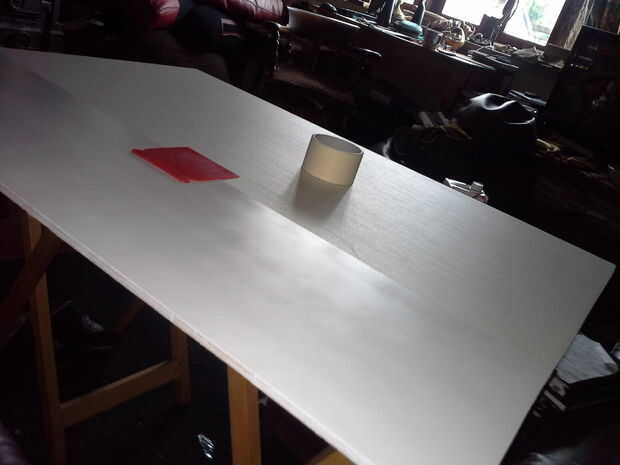 Consejo: utilicé una tarjeta de relleno limpio para empujar hacia abajo la cinta adhesiva pero se puede utilizar una regla.