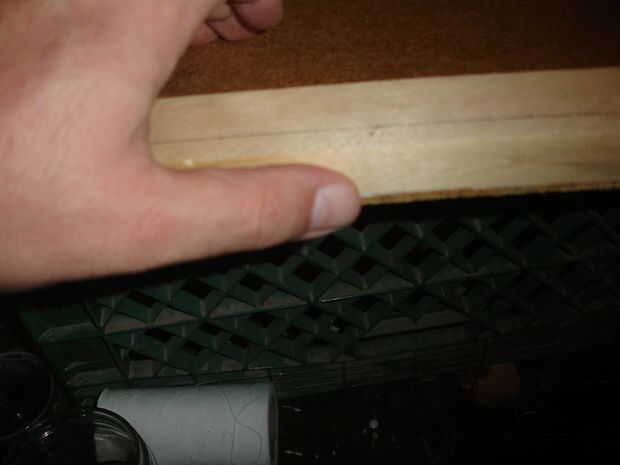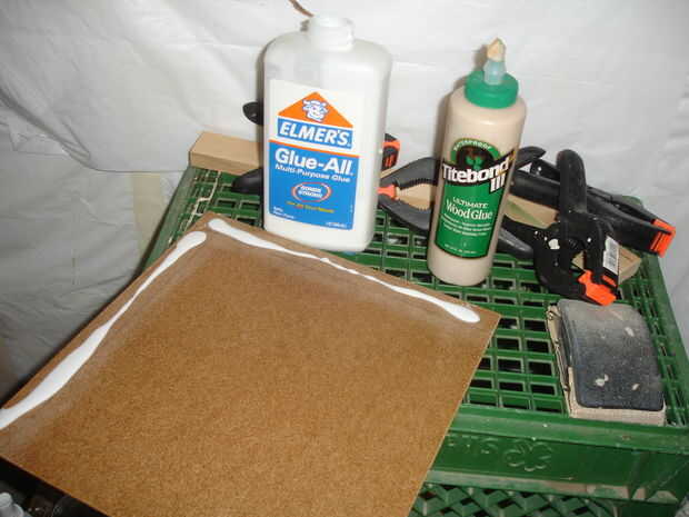 Presione la madera en el pegamento y sensación alrededor de los bordes con el dedo para asegurarse de que quede al ras con el borde de la masonita. Esto es más importante que la primera pieza, en la esquina superior izquierda.