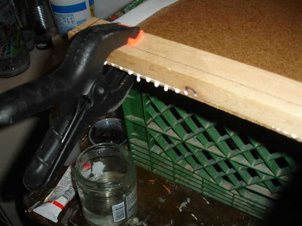 EM de la abrazadera hacia abajo y poner en orden el pegamento drippy. Utilizar abrazaderas de tienda de dólar. Me encanta las abrazaderas.