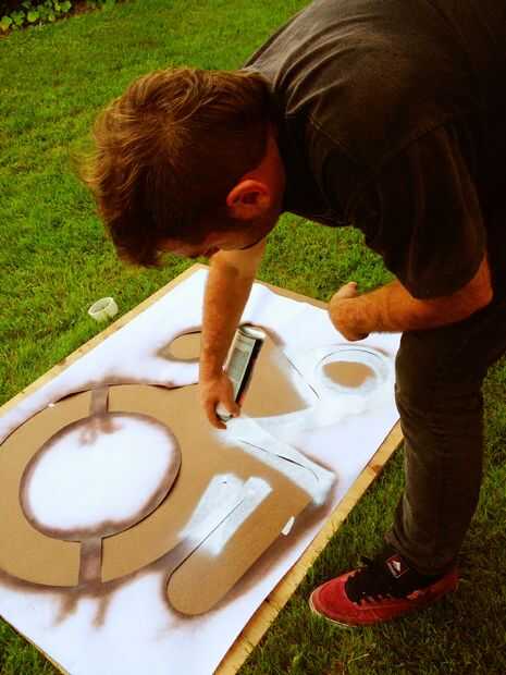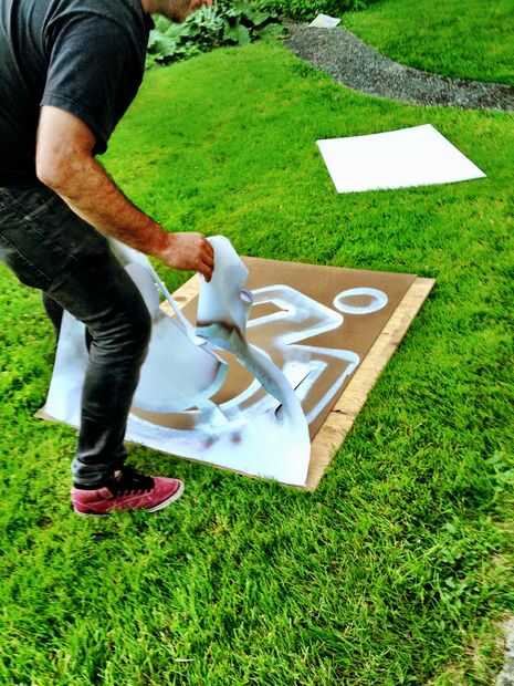 te voy a mostrar una manera rápida y divertida para tomar trozos de cartón y cinta aislante / aleatorio elementos / etc. para hacer una plantilla rápida. Con un poco de creatividad, ser luz en el primer spray más o menos y hacerlo en un lugar libre d