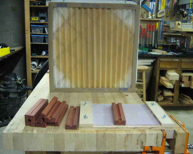 Quizá quieras epoxy los pernos en su lugar. De lo contrario podría girar mientras que usted está apretando las tuercas de mariposa. Encontré que era tan fácil hacer el perno por los hilos mientras aprieta las tuercas de mariposa. Soy capaz de aplicar suficiente presión para sostener el papel de lija en su lugar.