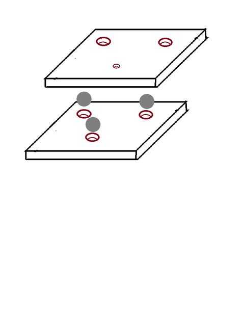 Para el tercer agujero no perfore en la segunda placa, solo basta con ir a medio camino a través de o menos. El diámetro de los orificios debe ser justo por debajo del diámetro de las bolas para que no conseguir atrapadas en los orificios al afianzado con abrazadera juntos.