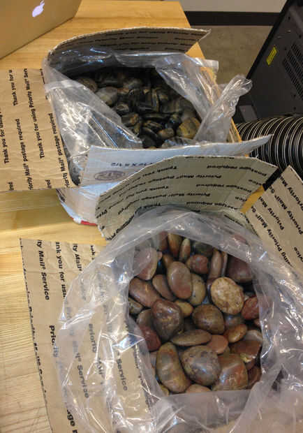 - Estaba usando ajustes de energía de energía de 60%, 70% de velocidad a 300DPI para estas rocas en un Epilog de 120W. Demasiado poder y serás realmente explosión grabar trozos de granito de la superficie y hacer una realidad desagradable (y un gran lío). Es similar a la cristalización que se produce cuando usted grabar vidrio a una temperatura demasiado elevada. Si usted quiere un corte un poco más profundo, dos pasos en una energía más baja es el camino a seguir.