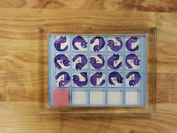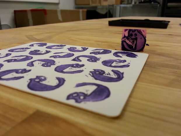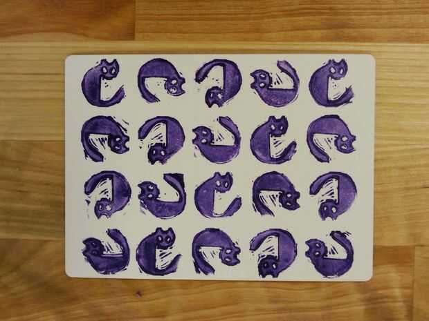Coloque la plantilla sobre el papel y usarlo para su sellado. Rotaba mina 90 grados cada vez para que se vea más interesante.