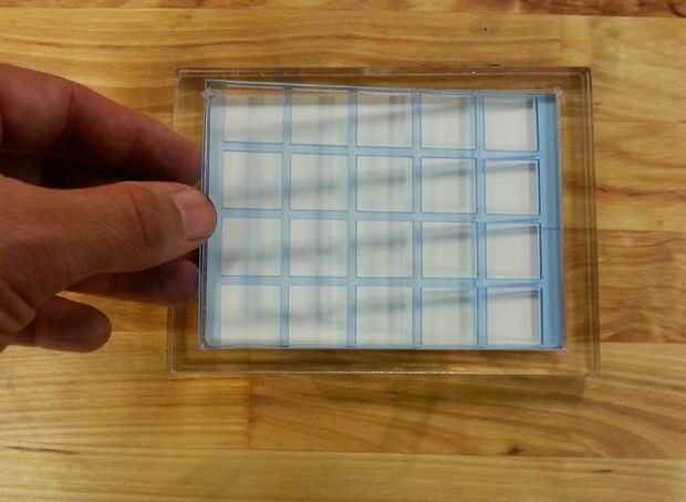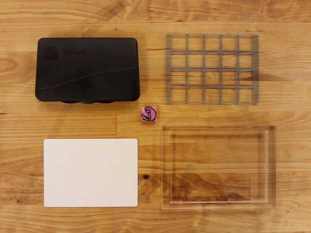 Para crear patrones corte una plantilla que es el tamaño de su papel. Decidí hacer una cuadrícula y un sello cuadrado en este ejemplo, pero realmente puedes elegir cualquier forma que desee. También usé acrílico grueso de 2,5 mm (0,09 pulg) porque tenía un tiempo duro conseguir el sello de la plantilla al utilizar 5mm.