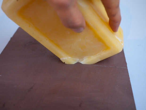 -Frotar la superficie con cera. Usaba un bloque de cera de abejas, pero he escuchado a lápices de colores de trabajo, también.