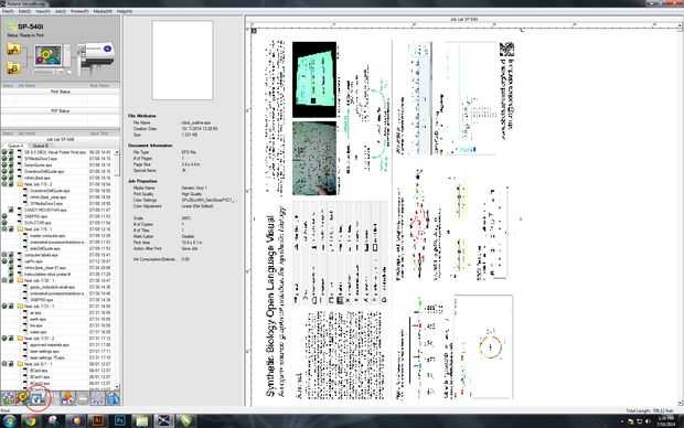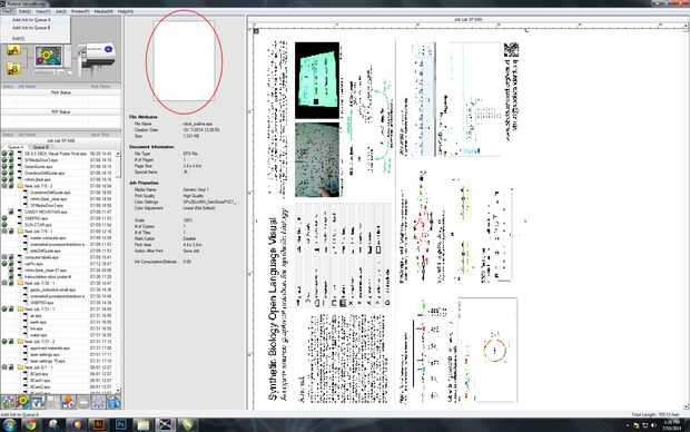 - Una vez abierto VersaWorks, seleccione "Archivo" ->"añadir Jobe a cola A". Seleccione el archivo y debería subir en la pequeña ventana de previsualización (en un círculo en rojo aquí). Tenga en cuenta que la ventana de vista previa en este ejemplo se ve vacía. Esto es porque VersaWorks ve nuestro contorno magenta como marcas de cortes y no imprimir líneas. Si habíamos mantenido el relleno negro dentro de nuestra imagen, vemos su contorno negro.