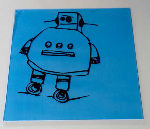 Quiero a mi robot a esbozarse con agua, por lo que pongo esquema de la plantilla sobre el acrílico para protegerla de la NeverWet.