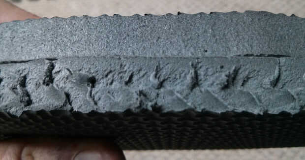 Una cosa para recordar, que en realidad olvidé Esta vez. Asegúrese de voltear la plantilla de la mitad de su corte outs. A pesar de que los cojines pueden dar la vuelta para la derecha o la izquierda, su inteligente para asegurarse de que usted tiene que emparejar las superficies sobre ambos pies por lo que necesitará hacer opuestos. Mi estera tenía un lado liso y el otro en una textura áspera. Si olvidas como yo entonces usted tendrá una segunda rejilla con la orientación opuesta, o vivir con los partes movibles no coincidentes en cada pie (no gracias).