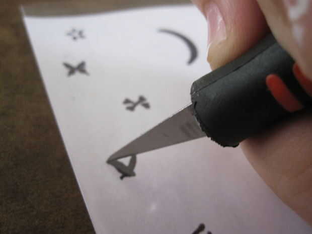 Después de tener la forma de corte de protector de la hoja, coloque un pice de la cinta en él (pero no empuje hacia abajo en él) intenta presionar tan poco como sea posible. Simplemente use el agujero desde el protector de hoja para guiar la manera de cortar la cinta.