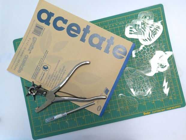 - Acetato o una película de plástico transparente similar acerca de. 005" espesor - acetato es una buena opción si usted está usando un cortador del laser porque se puede cortar con seguridad sin soltar gases nocivos. Compruebe siempre que el material sea seguro al corte del laser.